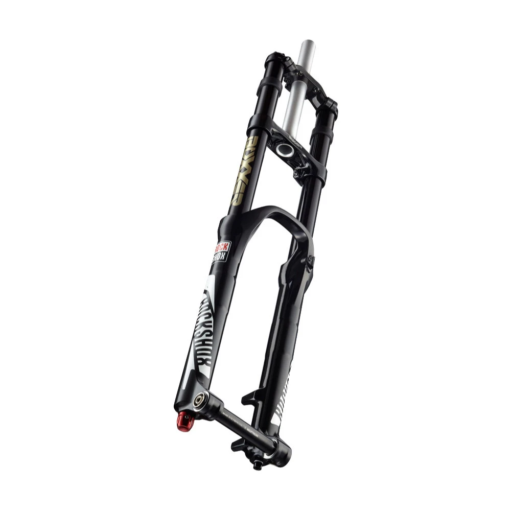 Ebenso wie der 1 1/8 Zoll Gabelschaft sind auch die 35 Millimeter dicken Standrohre aus Aluminium. Die Krone ist aus geschmiedetem Aluminium und beim Unterrohr hat sich der Hersteller RockShox für Magnesium entschieden. Für die Montage der Bremsscheibe steht eine Post Mount Aufnahme zur Verfügung und die maximale Größe der Scheibe beträgt 210 Millimeter. Das Gesamtgewicht der Downhill Gabel beträgt etwa 2.585 Gramm und für die Montage der Laufräder ist eine Maxle DH Steckachse mit 20 Millimetern Durchmesser angebracht.