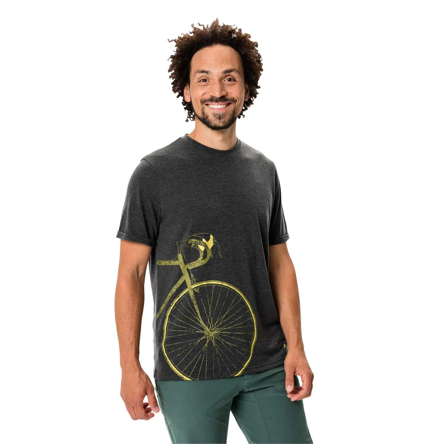 Wer modebewusst auf dem Rad oder im Alltag unterwegs sein will, ist mit dem kurzärmligen Cyclist 3 Radshirt von Vaude bestens ausgestattet. Es ist zudem leicht und dank des Materialmixes besonders komfortabel zu tragen. Die Kombination aus recyceltem Polyester und Cellulosefasern sorgt für ein leichtes, weiches Tragegefühl und ein tolles Körperklima durch Feuchtigkeitsableitung, Atmungsaktivität und schnelle Trocknung. Der Anteil der Holzfasern vermindert zudem die Bildung schlechter Gerüche. Neben Tragekomfort und Hautfreundlichkeit wurde bei der Herstellung ebenso auf Umweltfreundlichkeit geachtet. Deshalb setzt Vaude bei diesem Fahrradshirt auf nachhaltige und recycelte Materialien. Das Motiv auf der Front verleiht dem Shirt einen frischen Look.