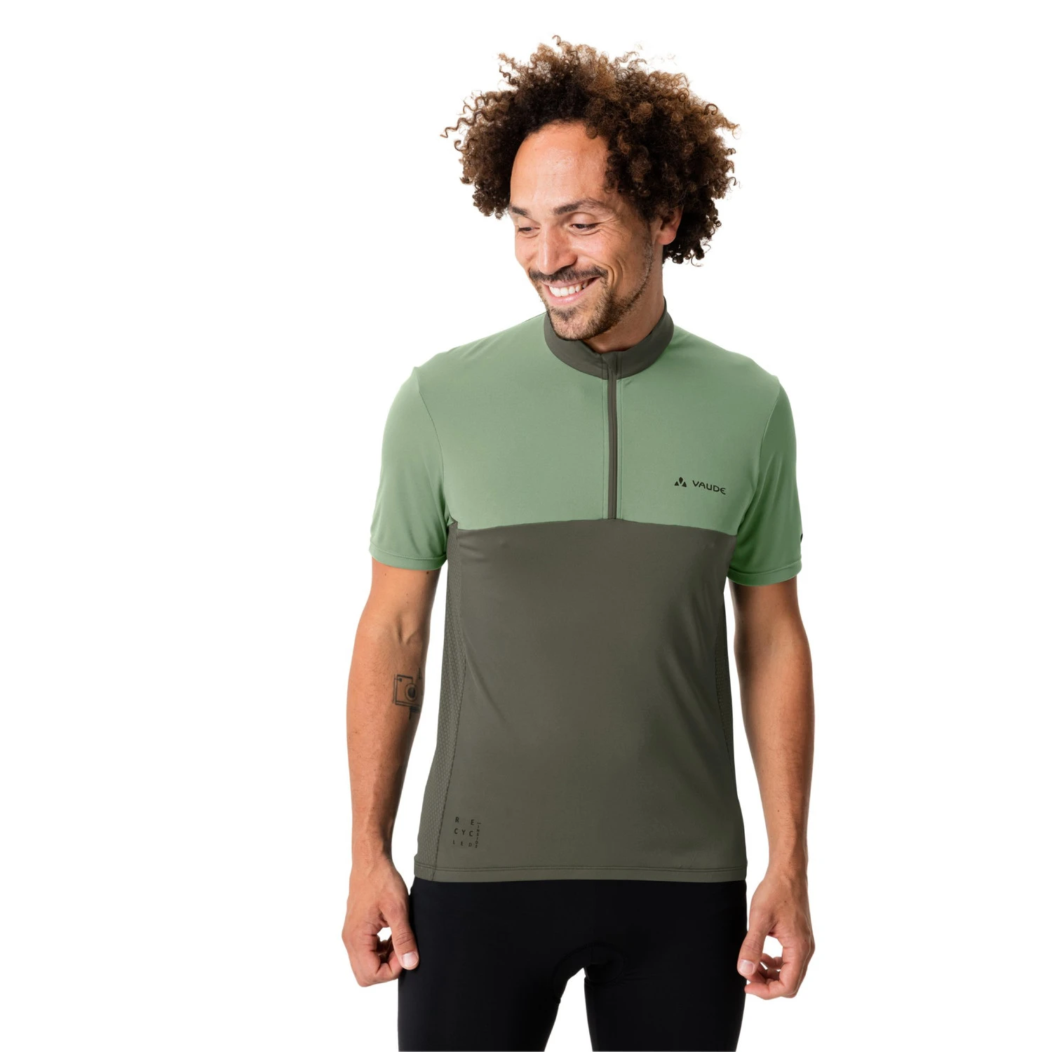 Das Bike-Trikot Matera HZ von Vaude für Herren aus überwiegend recyceltem Material trägt sich mit seinen atmungsaktiven und schnelltrocknenden Eigenschaften besonders angenehm beim Radfahren.